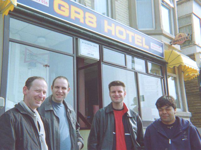 it was described on the internet. "A large 94 Bed hotel with lift to all floors. Two dining rooms, a large lounge area with full sized pool table and gaming machines. Superb Separate large Psychedelic Bar area. This hotel caters primarily for stag and hen groups. Fantastic location just a few yards from all the busy nightlife." "The GR8 Hotel (Formerly known as The Newlyn-Rex ) is perfectly situated in the centre of Blackpool. The Hotel offers 34 rooms half en-suite with all the amenities that accompany a large hotel such as two dining rooms, a large lounge area with full sized pool table and gaming machines. Superb Seperate large Psychedelic Bar area. This hotel caters primarily for stag and hen groups. Fantastic location just a few yards from all the busy nightlife. We can arrange all your entertainment before you arrive:- Pleasure Beach Tickets - Blackpool Tower Tickets - VIP Passes to the Top Pubs and Clubs, Go-carts, strippers, in fact anything to help your weekend go with a swing ideal for stag and hen parties." |