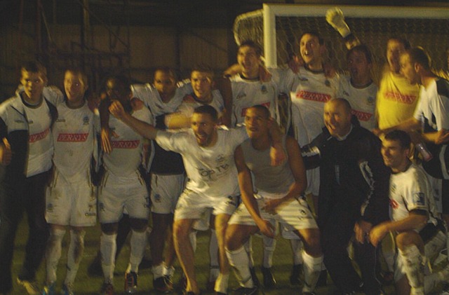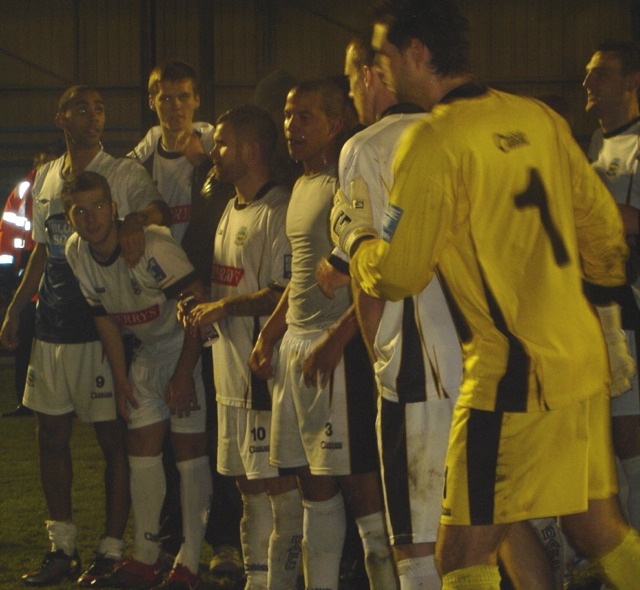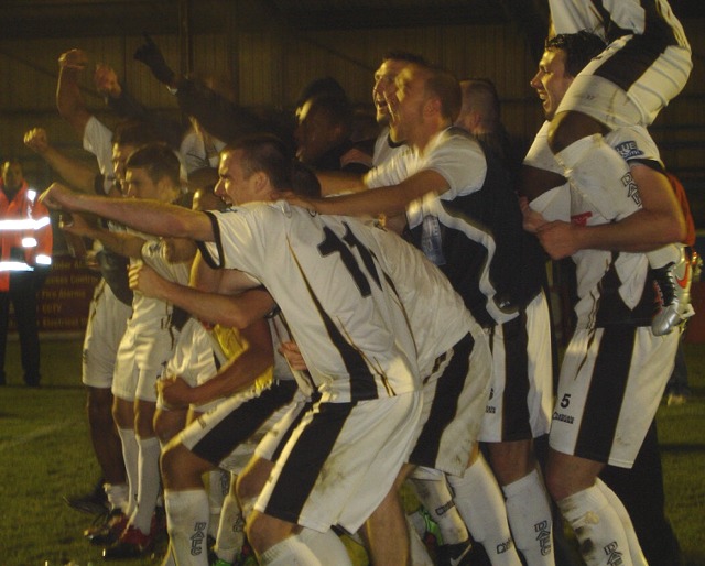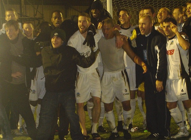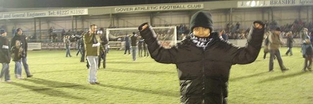 ![]() The Dover boys celebrate a memorable night at The Crabble! |