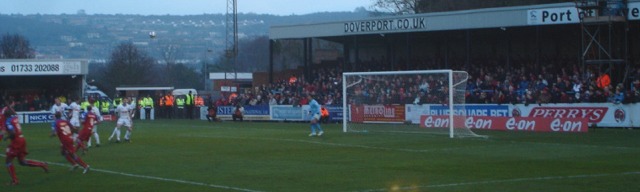 ![]() Dover mount an early attack but the goal is ruled out for offside |