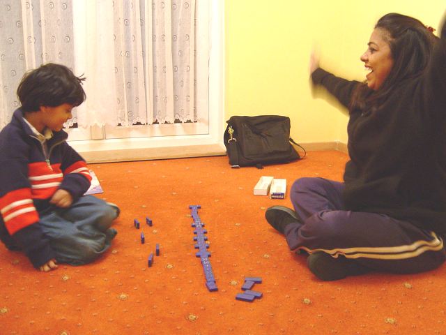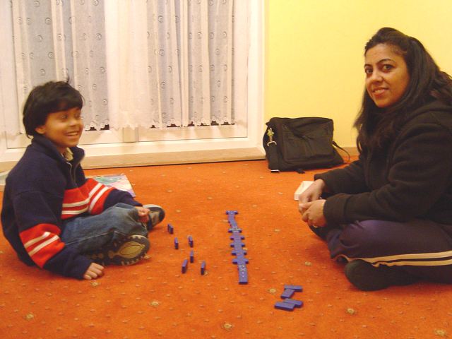 In the evening, Dylan & I play Dominoes...