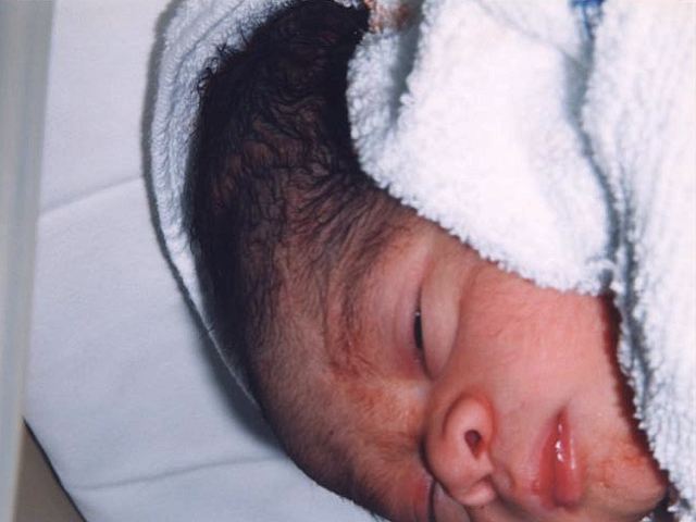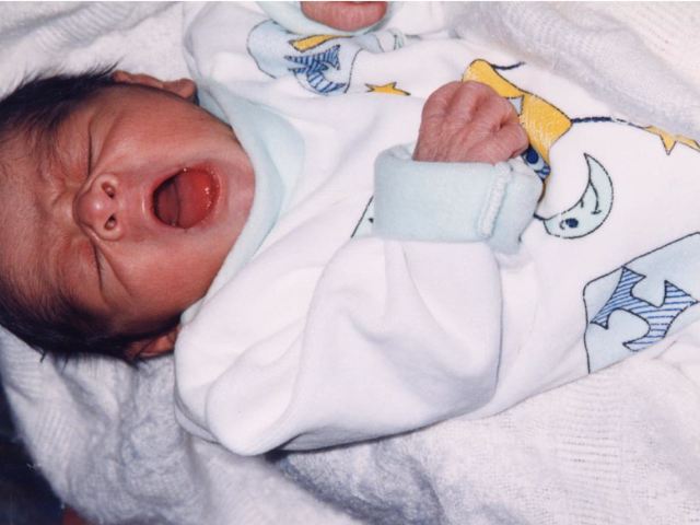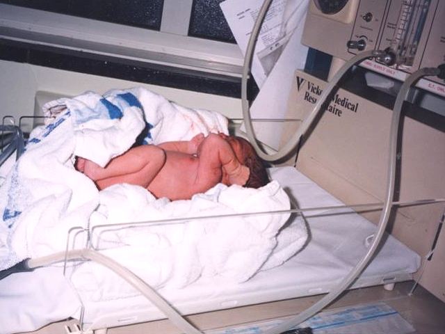 Being weighed before his first bath
