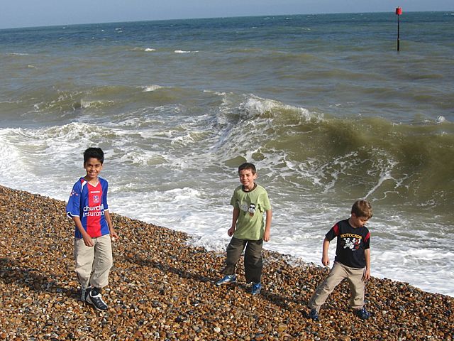 The Three boys enjoyed the sea waves |