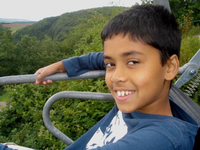 Dylan braving a smile in the chairlift!