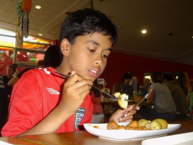 Dylan eats the produce
