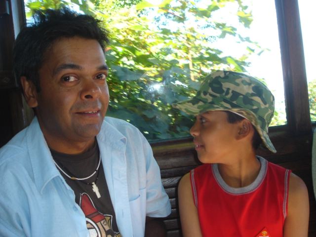 Alwyn and Dylan climb down to the dangerous rushing river of
