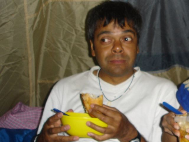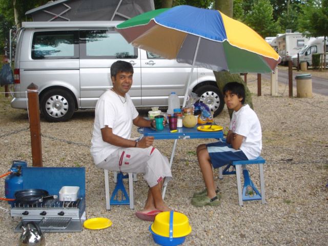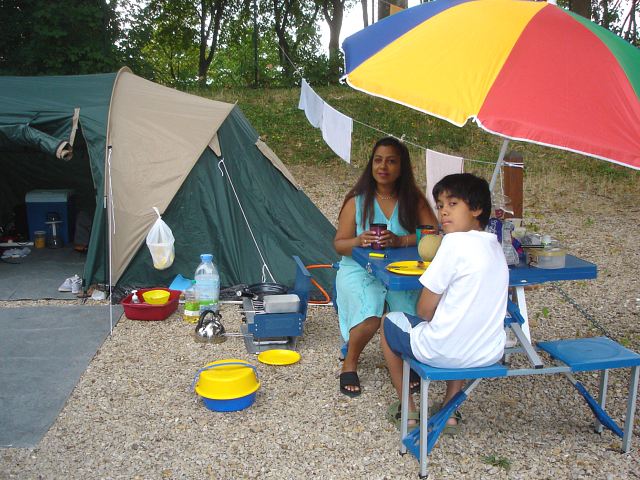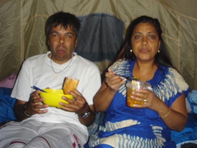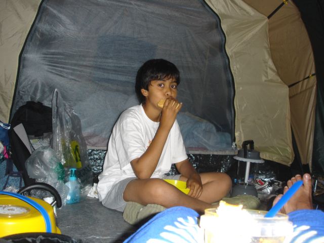 Back at the camp, it starts to rain! So we eat inside our tent. It's so cosy!