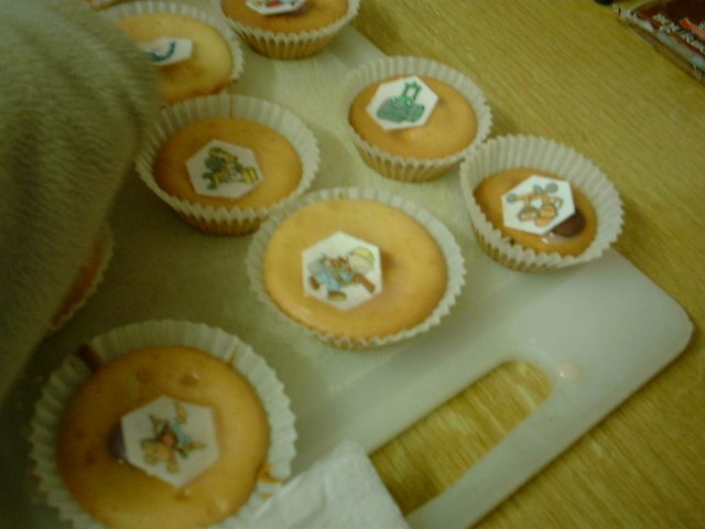 Today was spent baking some cakes - the only problem being that we had no eggs in the house. However, this was soon solved when mummy dashed over to Tesco's just before the rain started to really pour down.