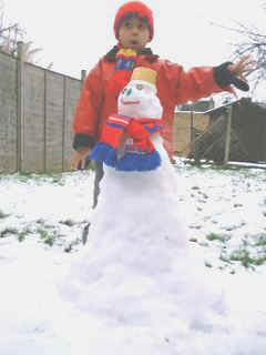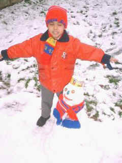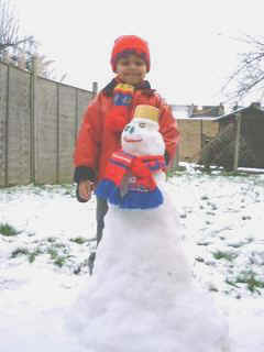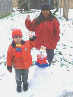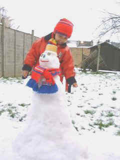 I couldn't resist making a snowman in the garden before heading off to school very late indeed!