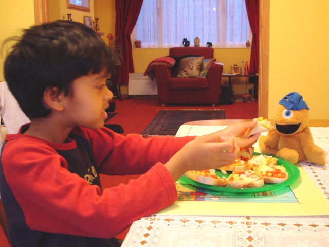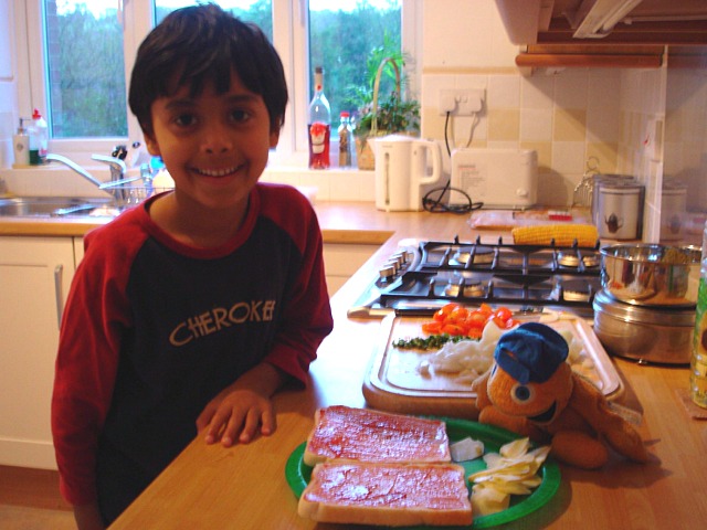 Zippy and I make a pizza for dinner