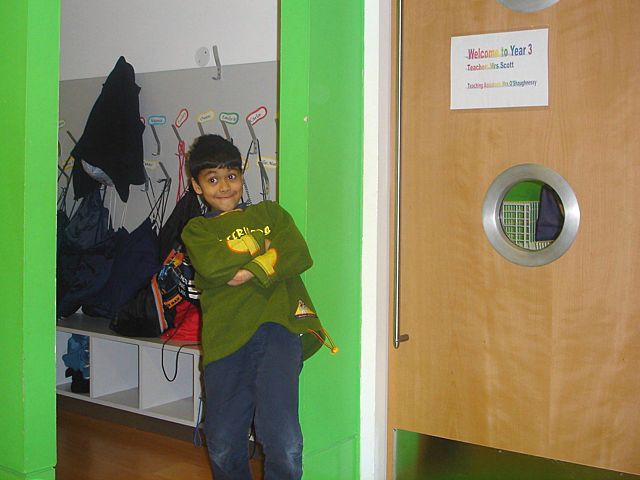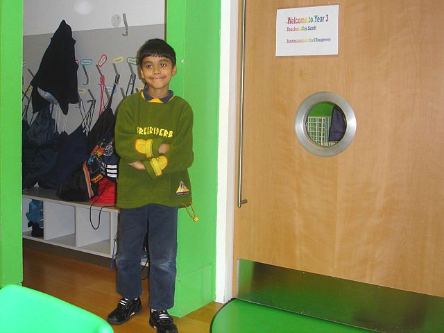 My classroom door and our coat pegs