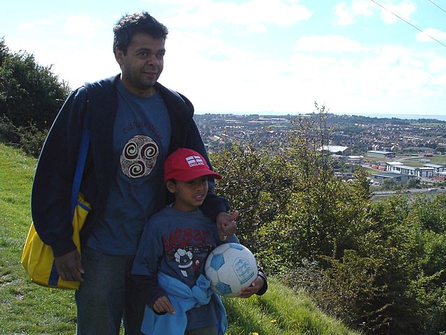 I take my football but it's too hilly here