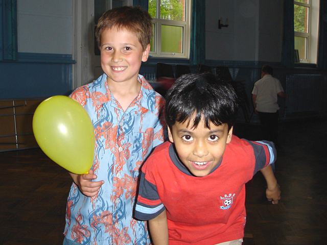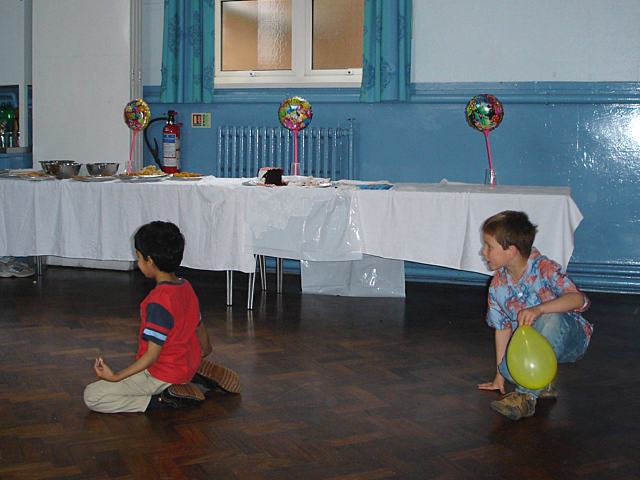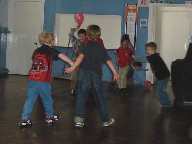 Kellan runs off with the balloon |