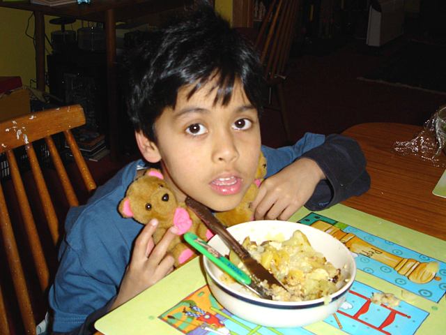 I help Candy and Snow cone eat my Dinner