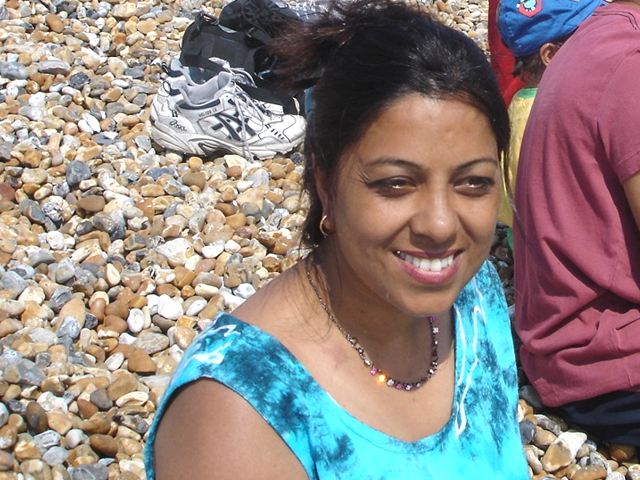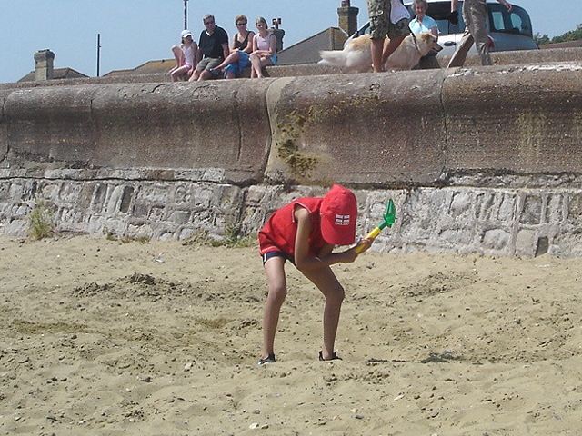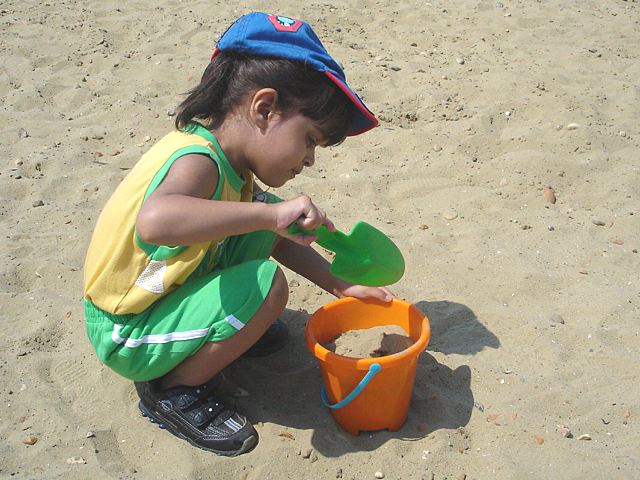 Melissa enjoys building a sandcastle |