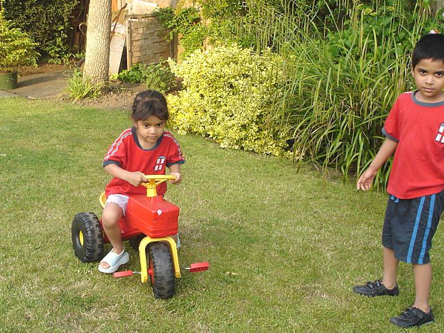 Melissa tries my tractor |
