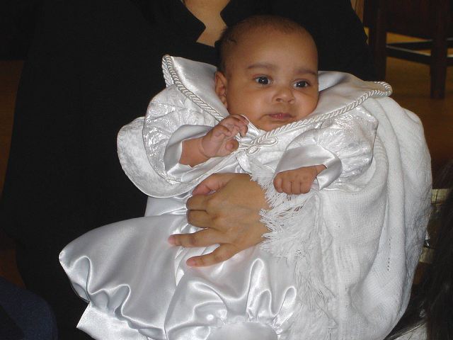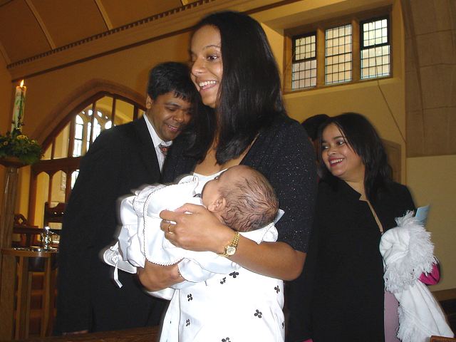Natalie carries her Godson |