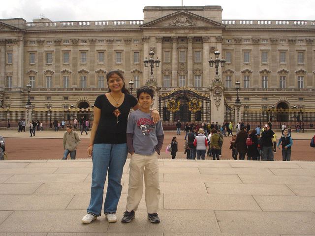 My aunty and I outside Buckingham Palace