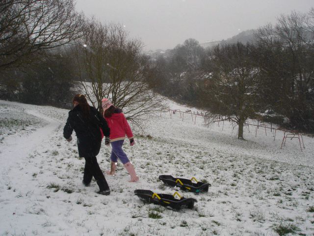 Kids are out with their sledges |