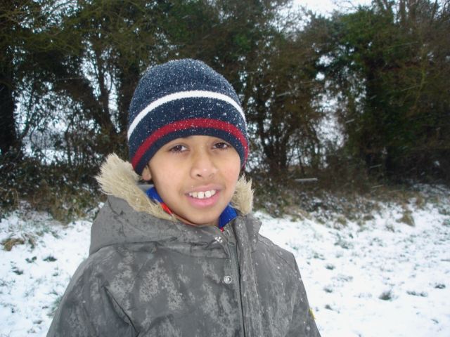 In the field the kids build a huge snowman!! |