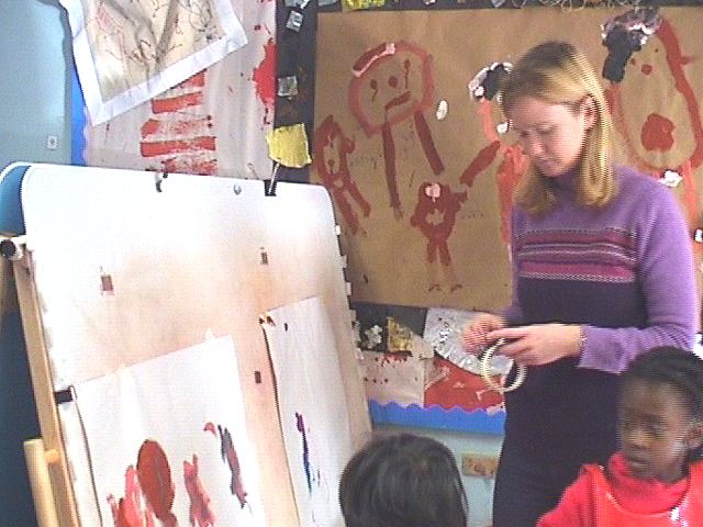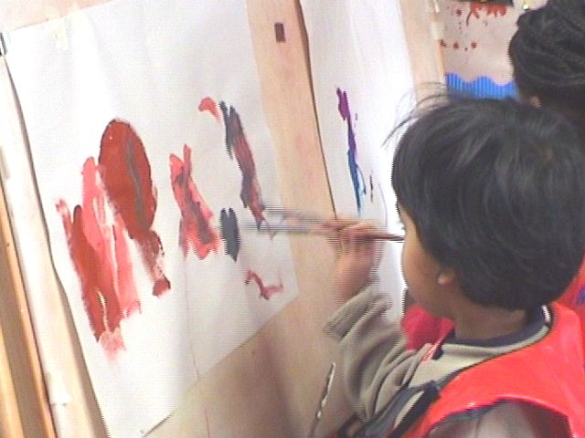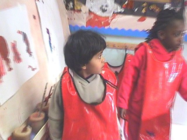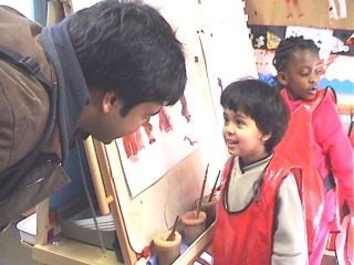 This is one of the few days that daddy came to school, so I showed him my painting skills