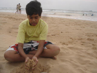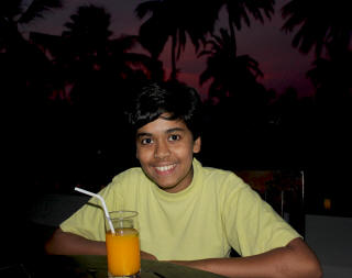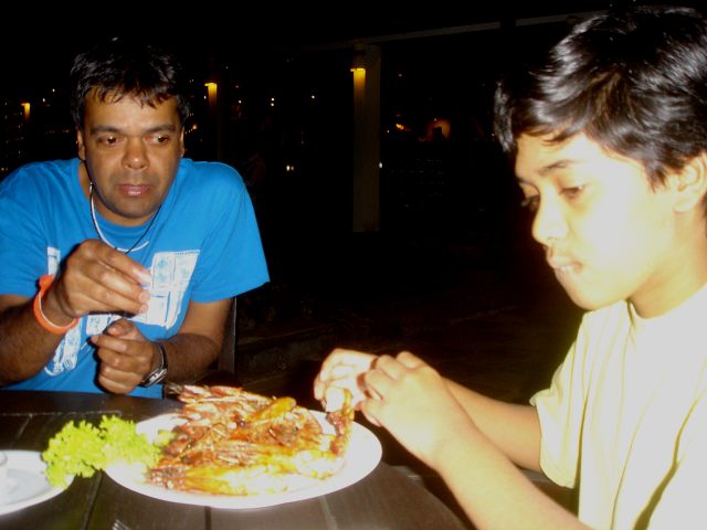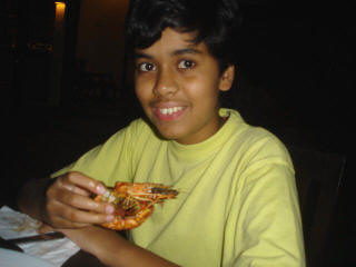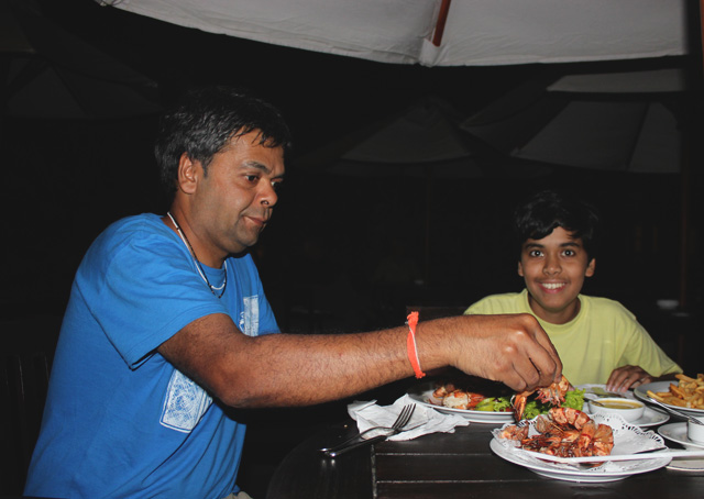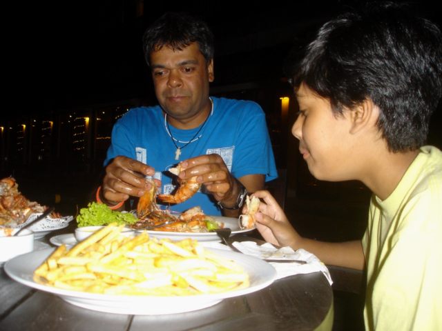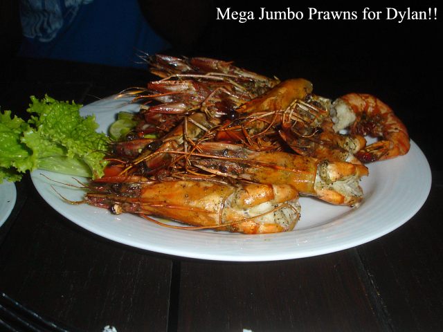 In the evening Dylan has his massive plate of Jumbo Prawns in Bentota!!